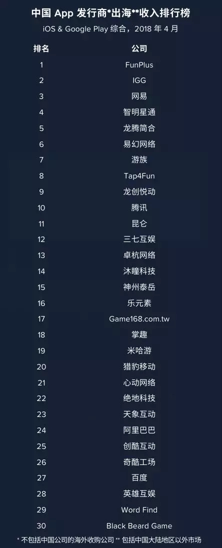 注:榜单排名以及本文中的分析,不包括中国的海外收购公司,比如 Supercell 等。